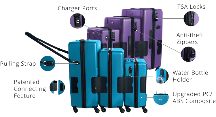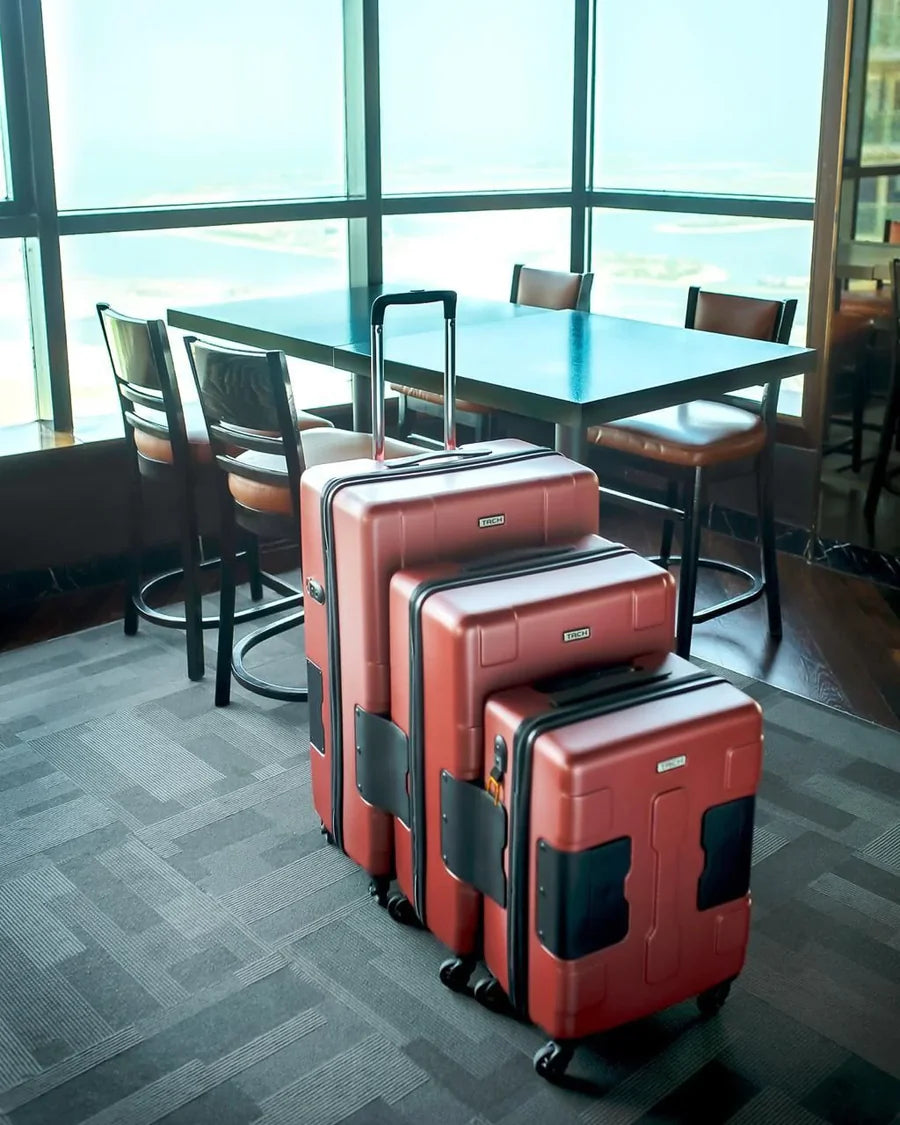The TACH attachable luggage system is made up of a 3-piece suitcase set with spinner wheels that lets you connect each piece together for efficient and stress-free travels. You’ll never need a trolley again—all thanks to TACH’s rolling bags and carry-on sets for men, women, and the family!
