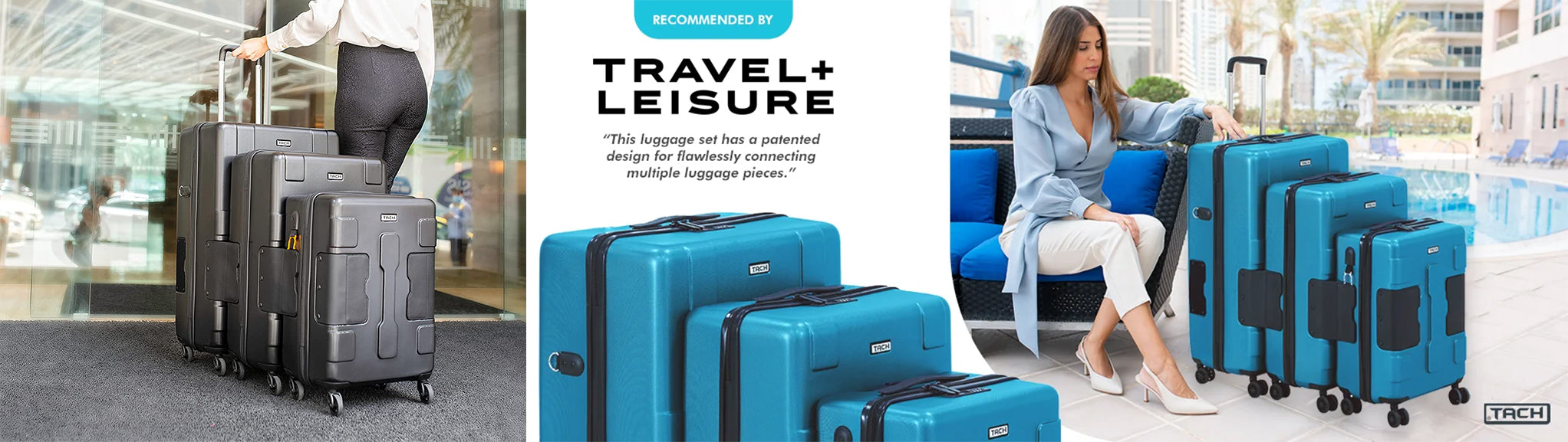 “TACH is a truly remarkable innovation and is the new way to travel” The Luggage List. With up to nine connecting cases, smart storage, and premium feel, it’s no wonder why TACH luggage was awarded the Best Luggage Innovation by The Luggage List. What authentically sets TACH luggage apart is its ability to connect multiple pieces of luggage into one solid rolling unit. Gone are the days wherein you’d have to use two hands to maneuver your suitcases. Aside from its interconnecting capability, TACH luggage is also equipped with adjustable pull straps, strong spinner wheels, bottle holder and many have TSA locks. TACH currently offers the TACH TUFF and TACH LITE. Whichever variant you choose, both can deliver the effortless feeling of gliding your luggage safely and securely as one unit. Thanks to TACH’s innovative design, passengers don’t need to rent a trolley or leave multiple suitcases unattended. Whether you’re an individual, a big family or somewhere in between, experience moving it all with just one hand, and no more stress.